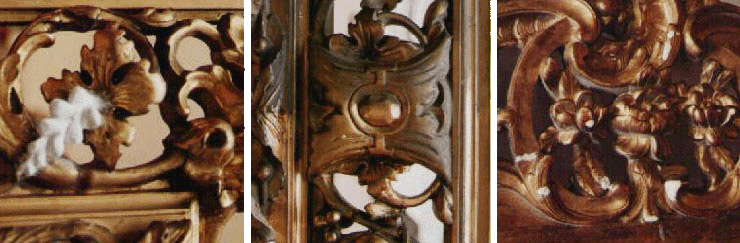 Restauramos y doramos nuevas piezas con las técnicas y materiales tradicionales: dorado y plateado al agua o al mixtión, con oro y plata finos y con oro falso. Aplicamos pátinas y corlas. Hacemos estofados al huevo, a la cola o al óleo.
